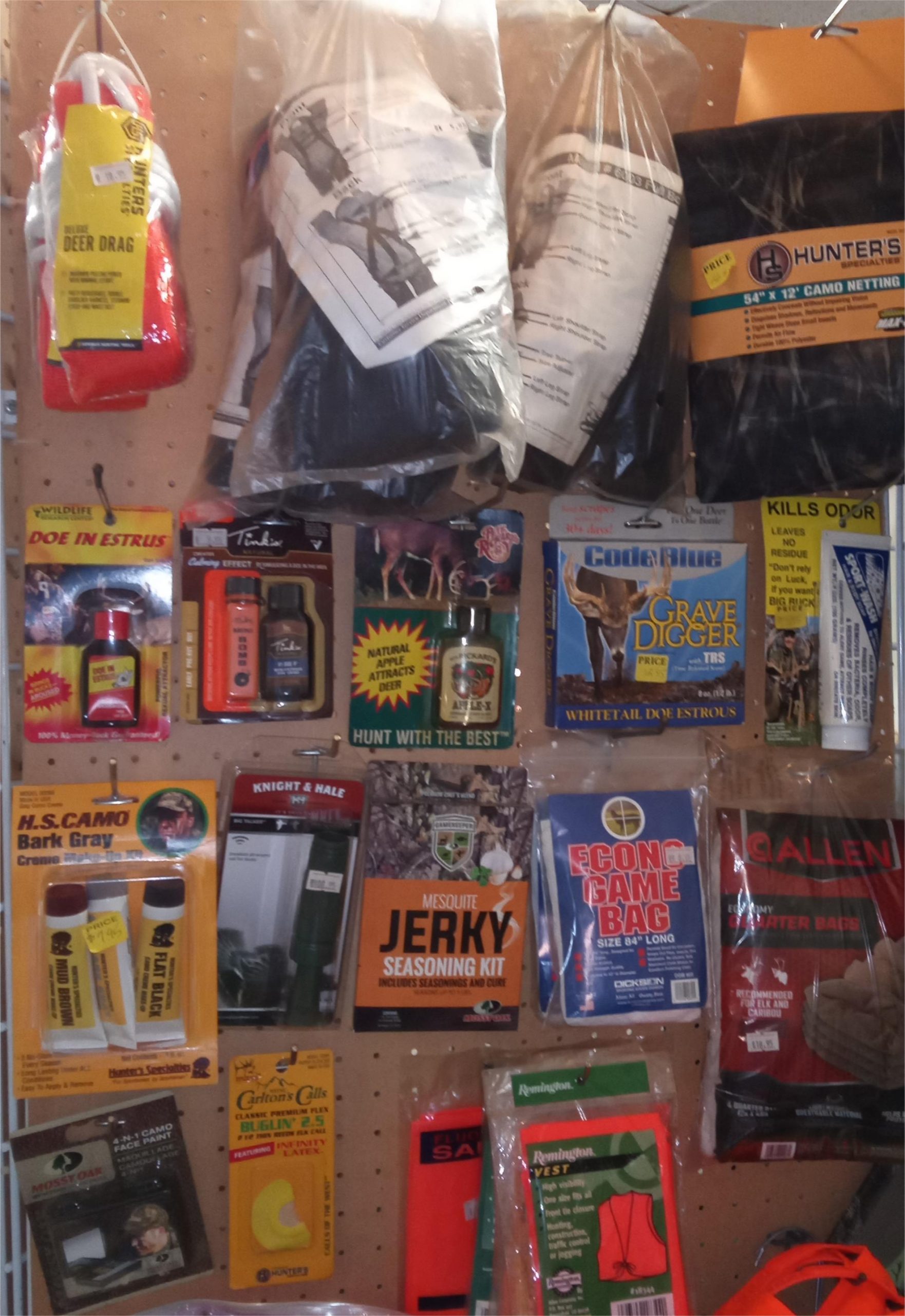 Game bags, camo netting, calls, cover scent, clothing, accessories and more.